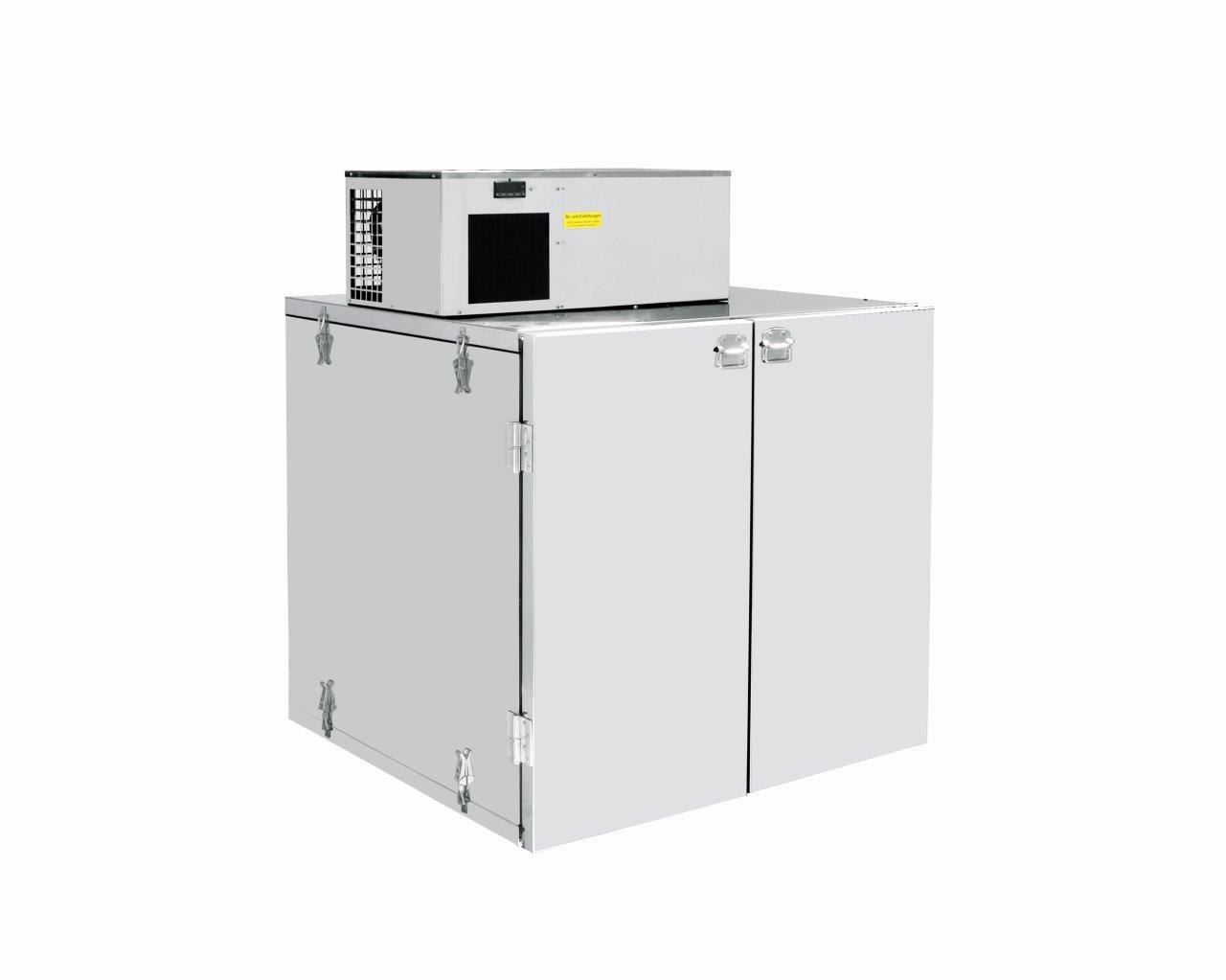 Das voll zerlegbare Gehäuse ist innen und außen aus Edelstahl. Der verstärkte Boden ist grundsätzlich aus Edelstahl und hat einstellbare Füße, Innentemperatur einstellbar von +2°C bis +10°C. Die Isolation ist aus FCKW-freiem PU-Schaum standardmäßig 40 mm Stärke. Die Türen sind mit Quick-Snap-Magnetdichtungen versehen. Wir verwenden elektronische Temperaturregler mit digitaler Anzeige.